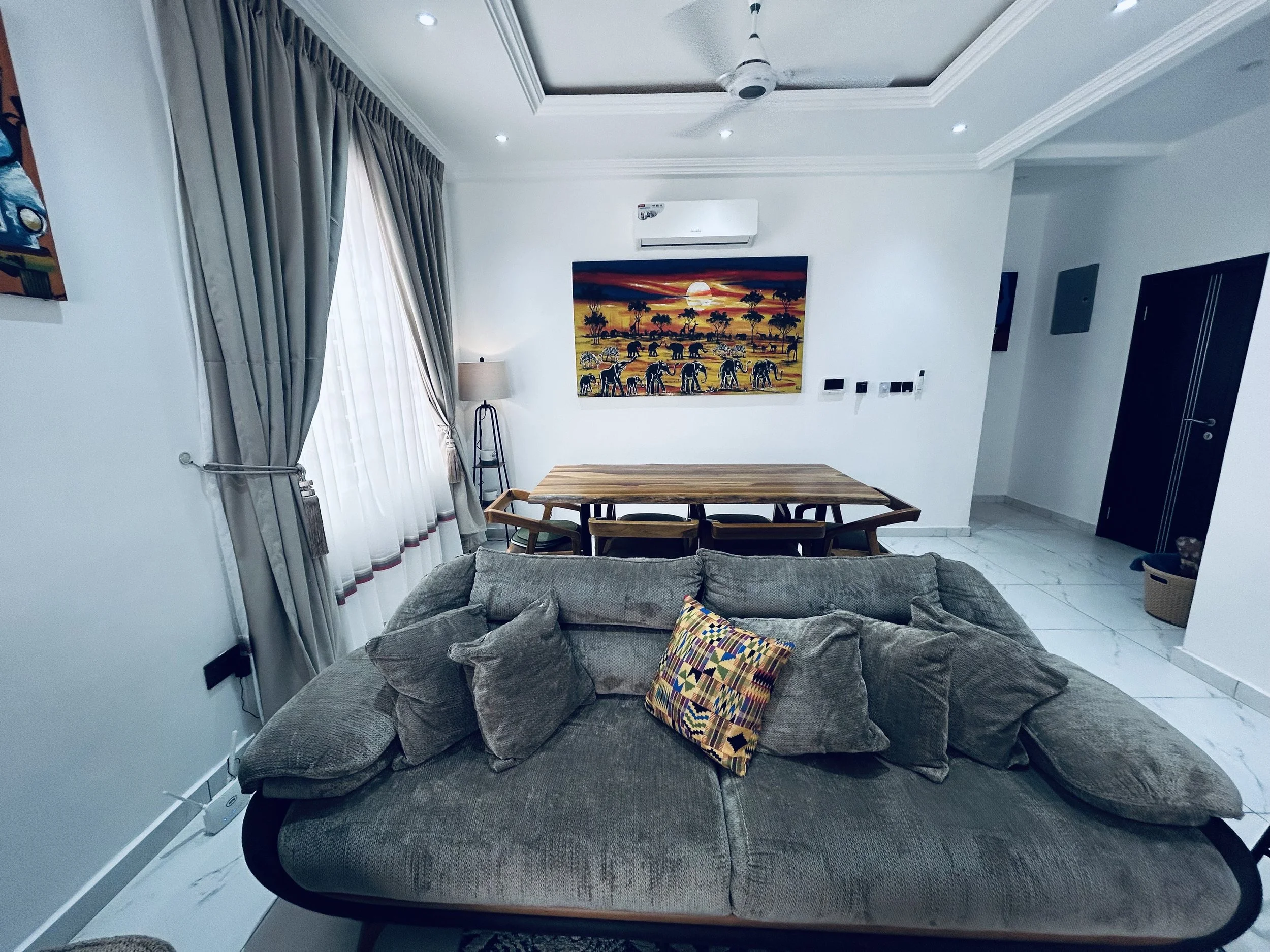 Taking center stage as you enter our home is a stunning piece of artwork that immediately captures attention. Mounted on a stretched canvas, this painting showcases a vibrant depiction of some of Africa’s most iconic wildlife, rendered with exquisite detail and vivid colors. Created by talented local artists, the piece was thoughtfully acquired from the One Family Arts store at the Accra Arts Centre, reflecting both the rich artistic heritage of the region and our admiration for its natural beauty. This artwork not only enhances the living room but also serves as a tribute to Africa’s extraordinary creativity and wildlife.